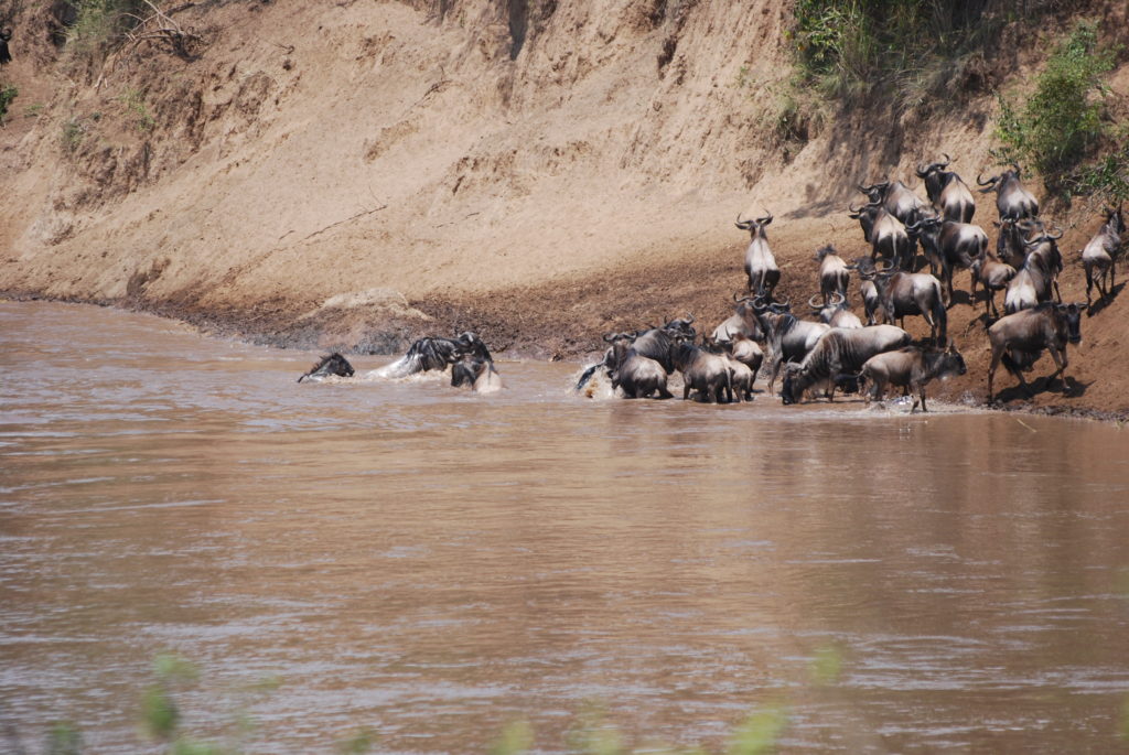 No podíamos marchar del Masai Mara sin visitar el famoso río Mara. Este río, que cruza el Serengeti y el Masai Mara, se encuentra dentro de la ruta de la migración de los ungulados. Aquí se producen las famosas escenas de los documentales, donde miles de ñus y cebras cruzan el curso del agua al mismo tiempo, en una estampida de animales evitando ser cazados por los cocodrilos e hipopótamos que habitan en las aguas del río.
